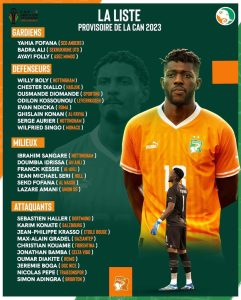 Pays hôte de la 34e édition de la Coupe d’Afrique des Nations, la Côte d’Ivoire également a rendu public sa liste des 27 joueurs qui défendront ses couleurs en janvier et février prochain. Les habitués tels que Sébastien Haller, Seko Fofana, Serge Aurier, Frank Kessié sont sélectionnés. Le jeune Simon Adingra de Brighton va, participer à sa première CAN. Le grand absent de cette liste est Wilfried Zaha de Galatasaray en Turquie.