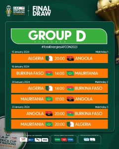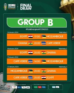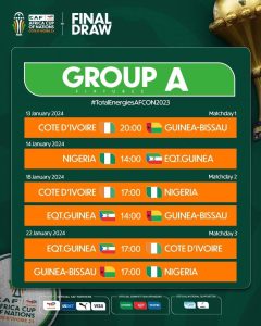 Le programme détaillé des matchs de poules également sont disponibles. Le pays hôte la Côte d’Ivoire ouvre le bal le 13 janvier 2024 contre la Guinée-Bissau.